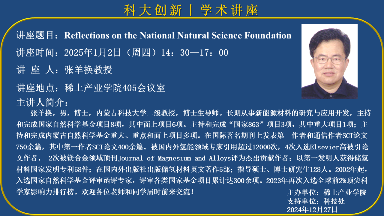 讲座题目:Reflections on the National Natural Science Foundation